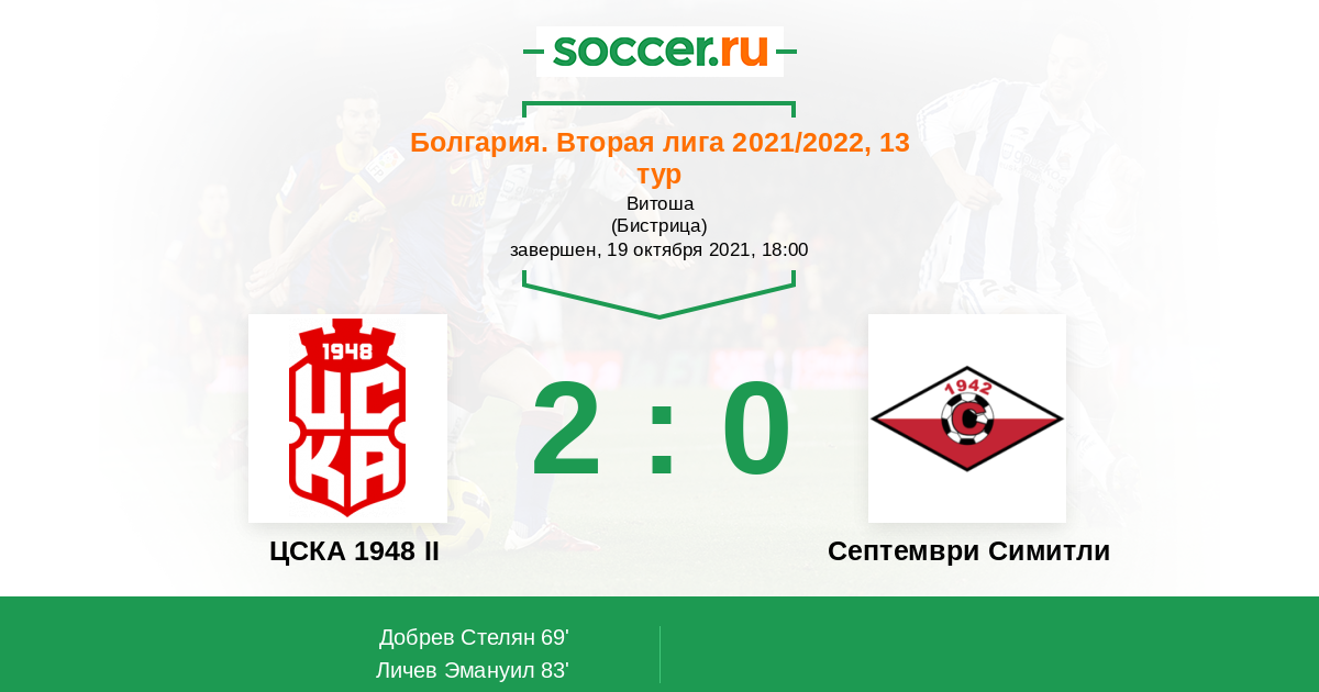 | ЦСКА 1948 II | 4:1 | 0:0 | 4:1 |