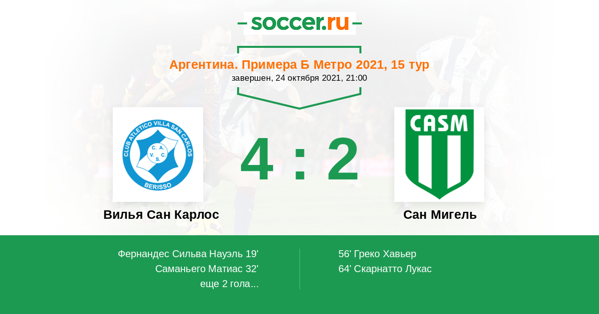 | Аргентина. Примера С Метро | 6 | 3 | 1 | 2 |