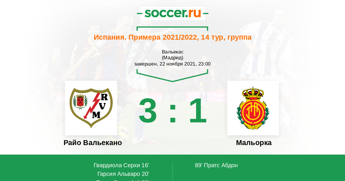 | Мальорка | 42:24 | 25:8 | 17:16 |