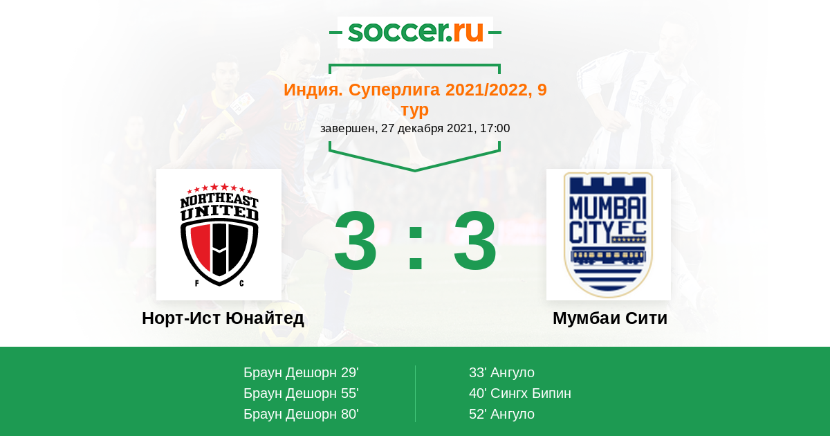 | Норт-Ист Юнайтед | Мумбаи Сити | |