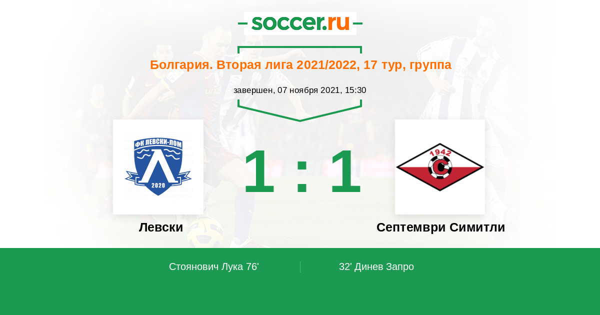 | Болгария. Вторая лига | 1 | 0 | 1 | 0 |