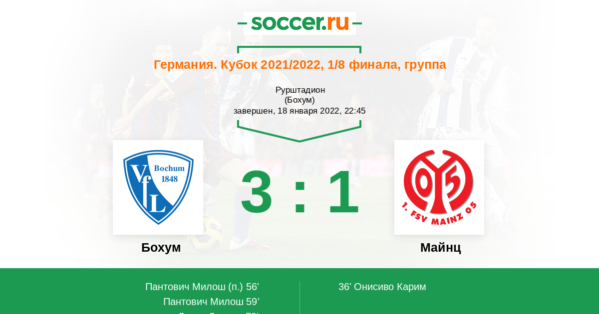 | Бохум | 26:40 | 17:20 | 9:20 |