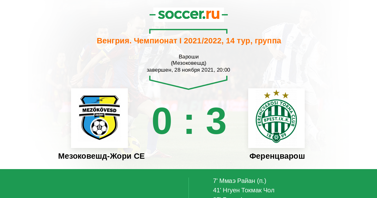 | Мезоковешд-Жори СЕ | Ференцварош | |