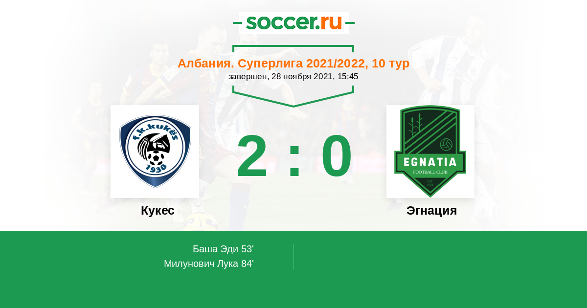 | Кукес | 16:20 | 5:14 | 11:6 |