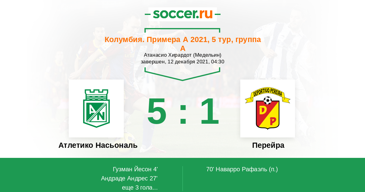 | Атлетико Насьональ | 43:25 | 25:11 | 18:14 |