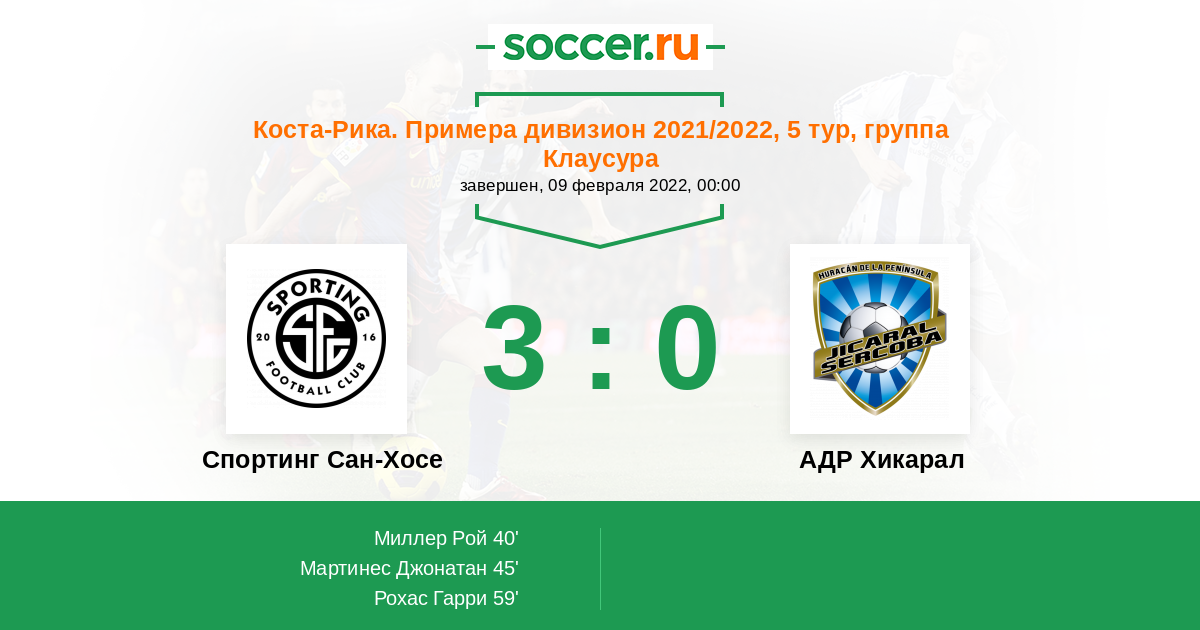 | Спортинг Сан-Хосе | АДР Хикарал | |