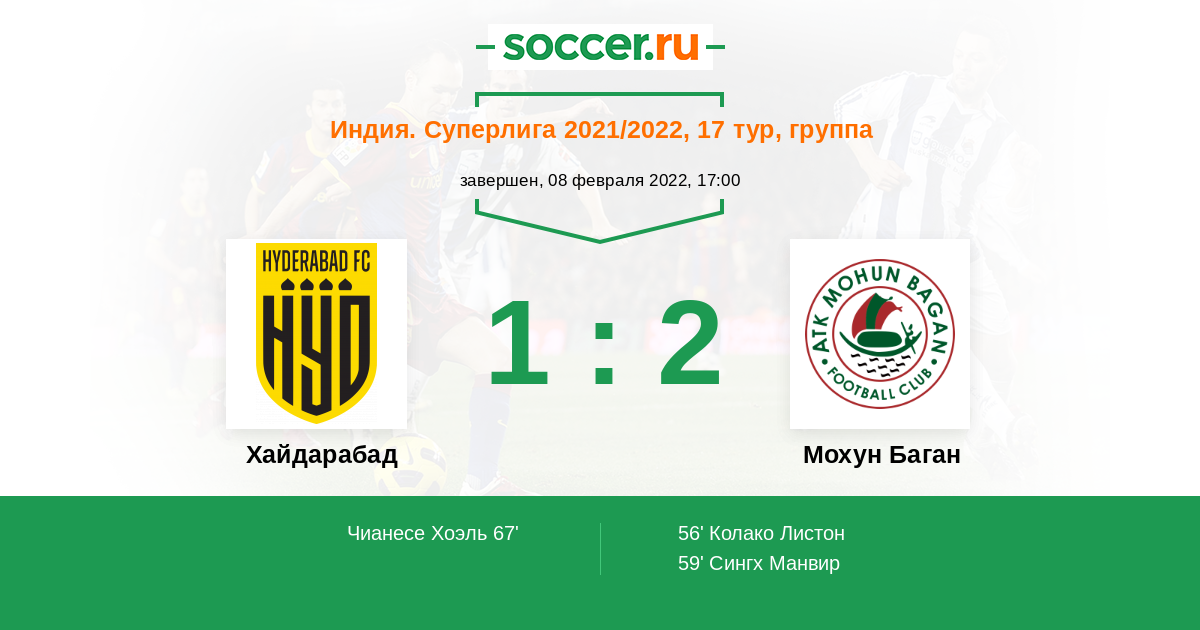 | Мохун Баган | 17:9 | 10:3 | 7:6 |