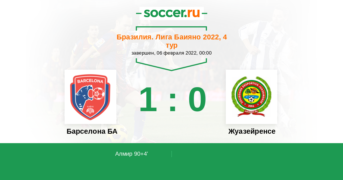 | Бразилия. Лига Баияно | 4 | 1 | 0 | 3 |