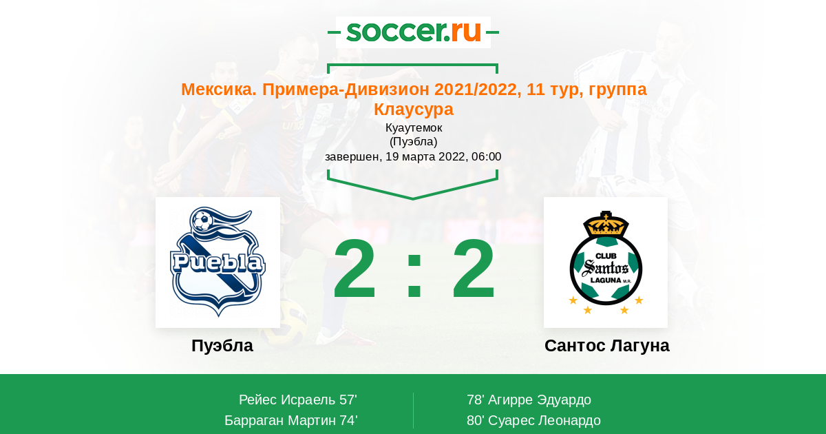 | Пуэбла | Сантос Лагуна | |