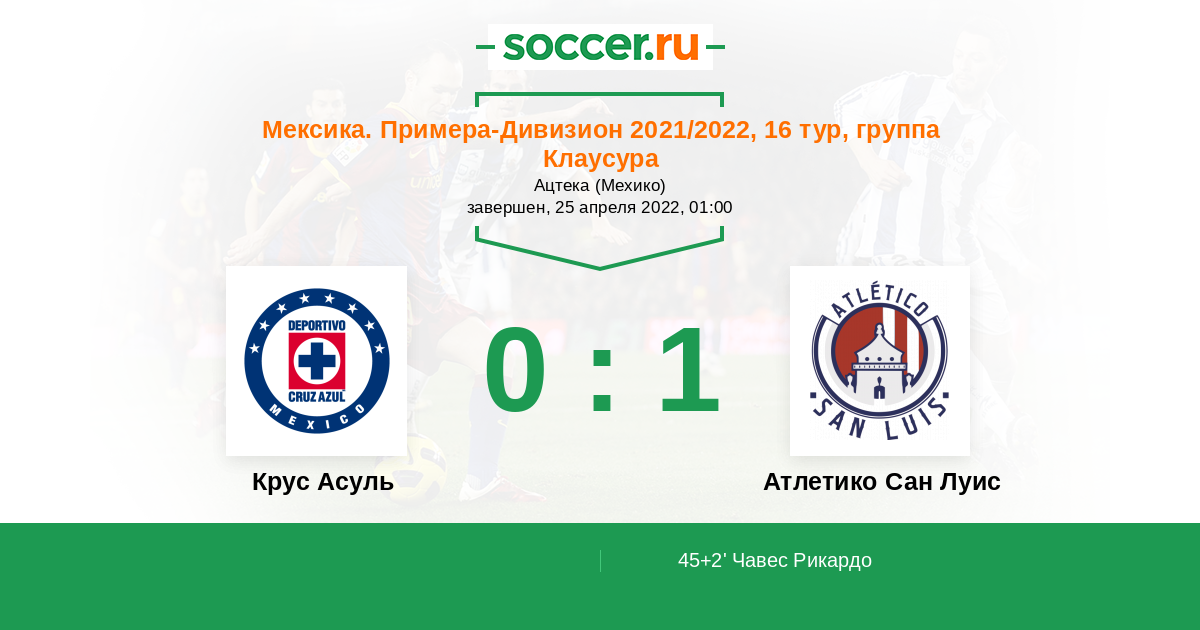 | Крус Асуль | Атлетико Сан Луис | |