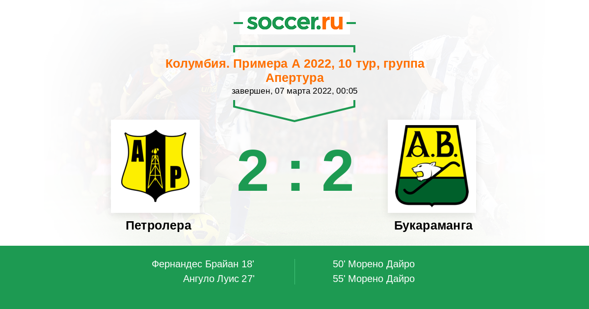 | Колумбия. Примера B | 10 | 4 | 4 | 2 |