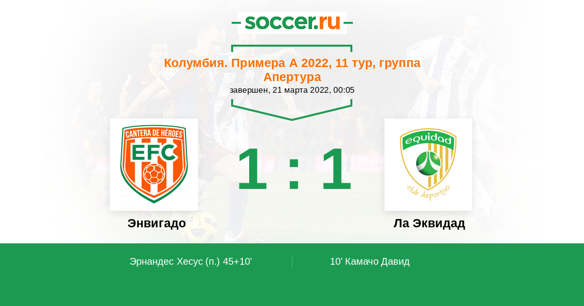| Ла Эквидад | 43:34 | 22:17 | 21:17 |