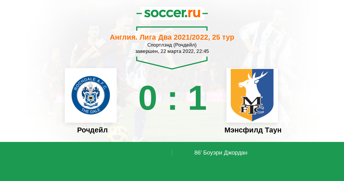 | Мэнсфилд Таун | 32:41 | 22:15 | 10:26 |