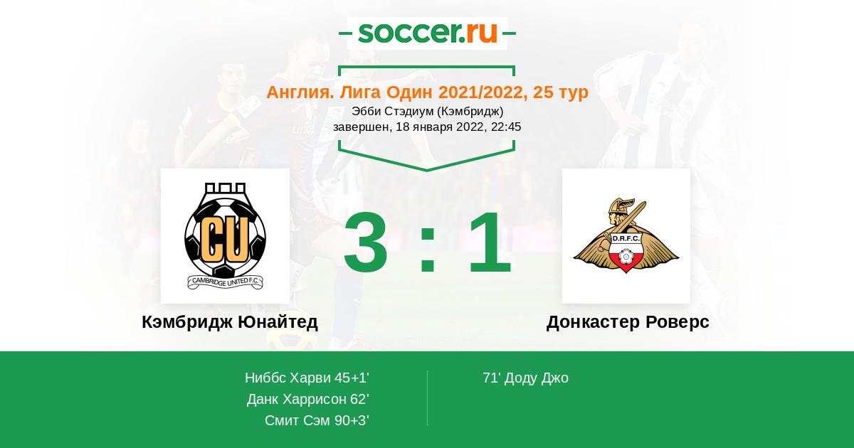 | Кэмбридж Юнайтед | Донкастер Роверс | |