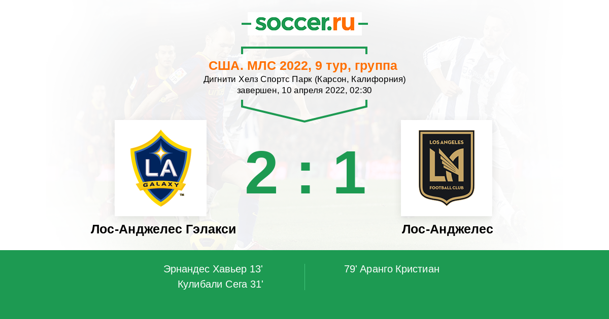 | Лос-Анджелес Гэлакси | 55:61 | 28:19 | 27:42 |