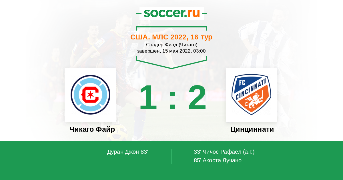 | Чикаго Файр | 20:21 | 11:13 | 9:8 |