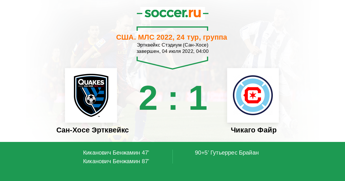 | Сан-Хосе Эртквейкс | Чикаго Файр | |