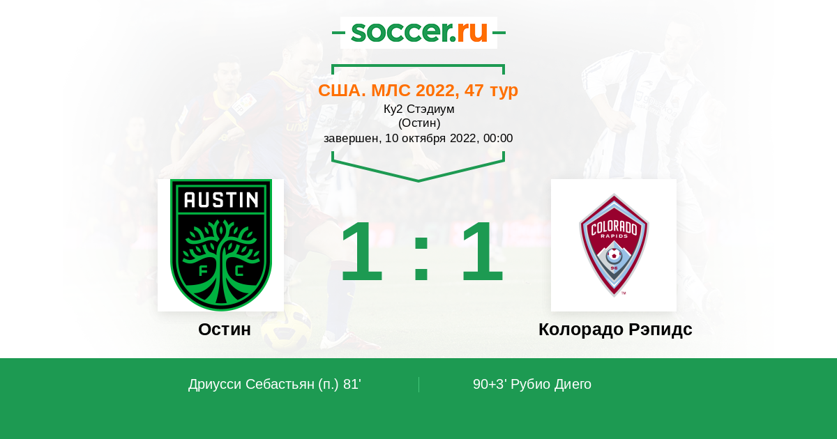 | Колорадо Рэпидс | 14:12 | 9:8 | 5:4 |