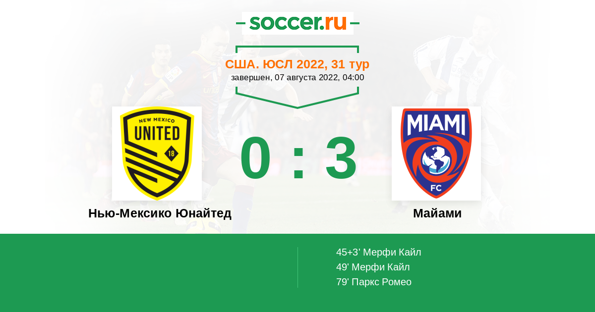 | Нью-Мексико Юнайтед | 3:0 | 1:0 | 2:0 |
