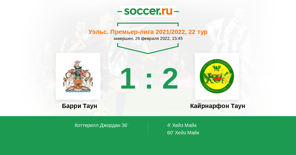 | Барри Таун | Кайрнарфон Таун | |