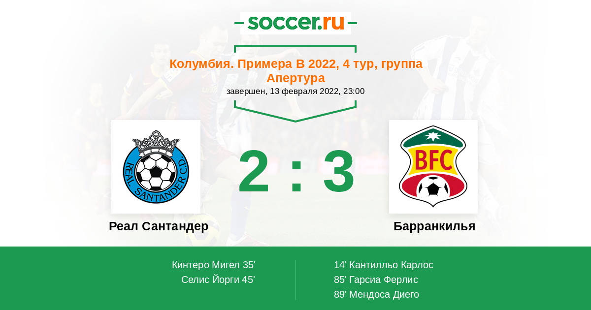 | Реал Сантандер | 42:39 | 24:10 | 18:29 |