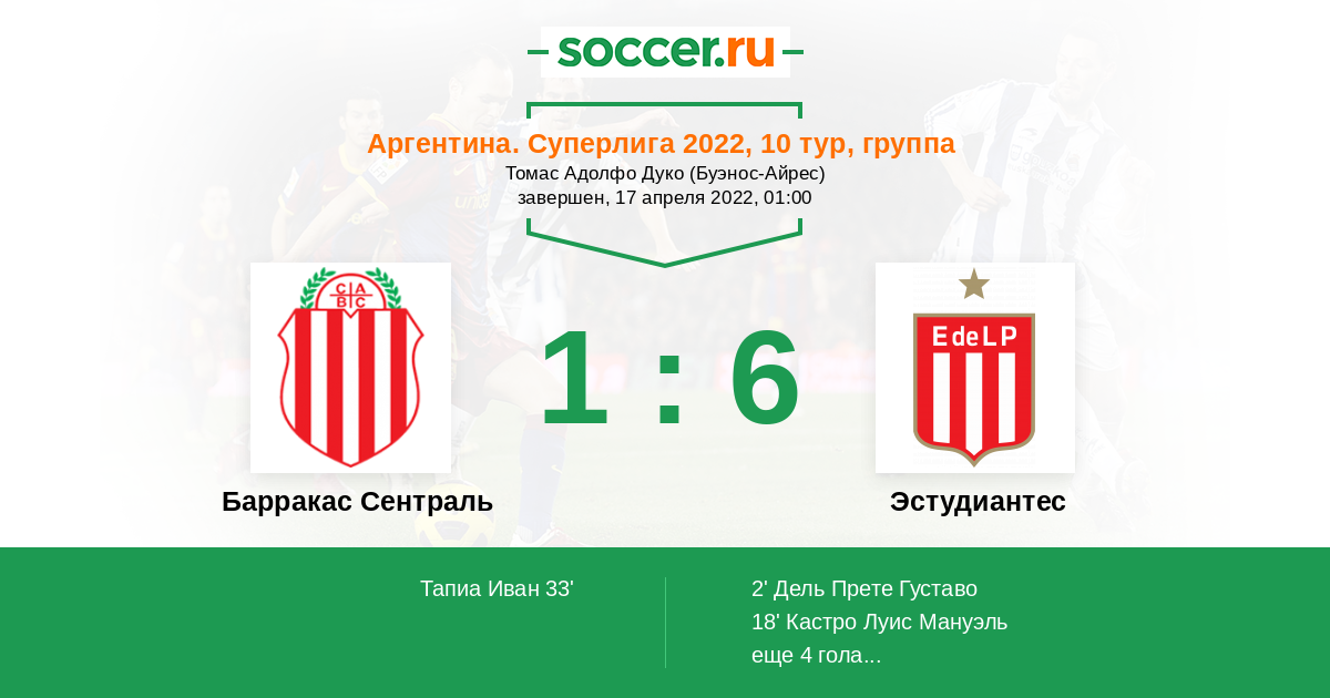 | Барракас Сентраль | 7:14 | 3:2 | 4:12 |
