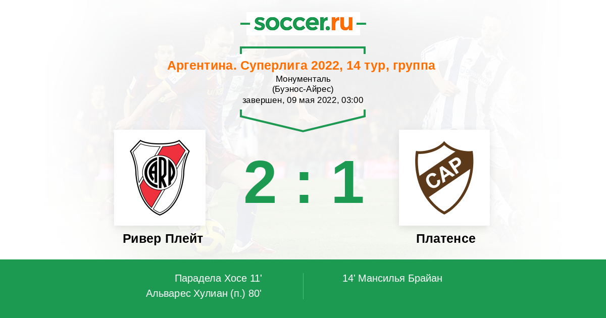 | Ривер Плейт | 13:5 | 10:4 | 3:1 |