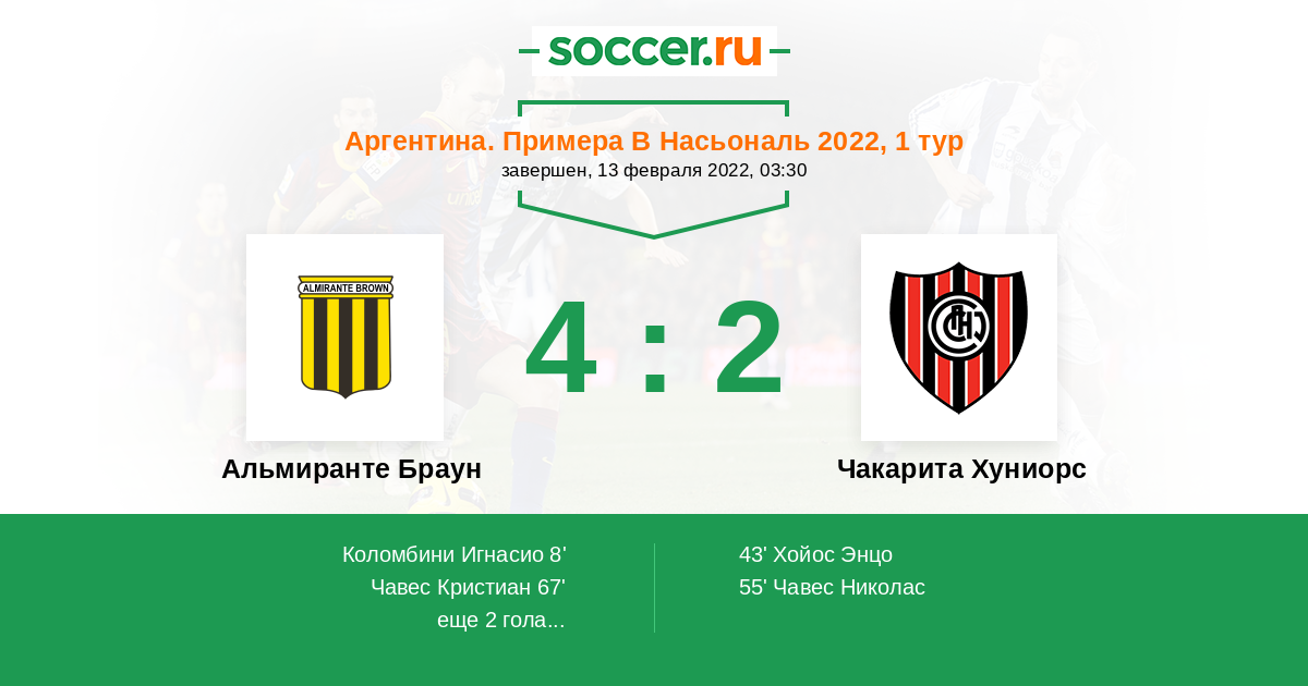 | Альмиранте Браун | Чакарита Хуниорс | |