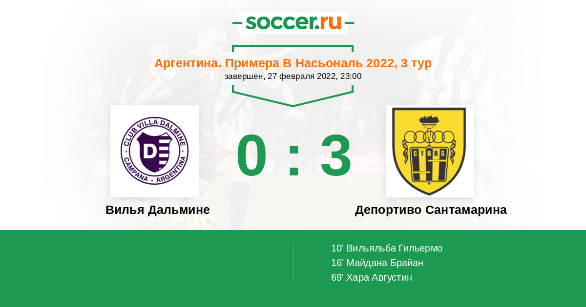| Вилья Дальмине | Депортиво Сантамарина | |
