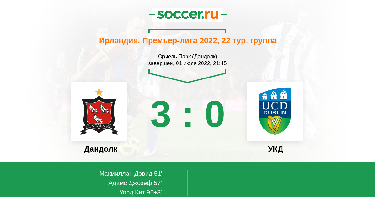 | Дандолк | 90:54 | 45:27 | 45:27 |