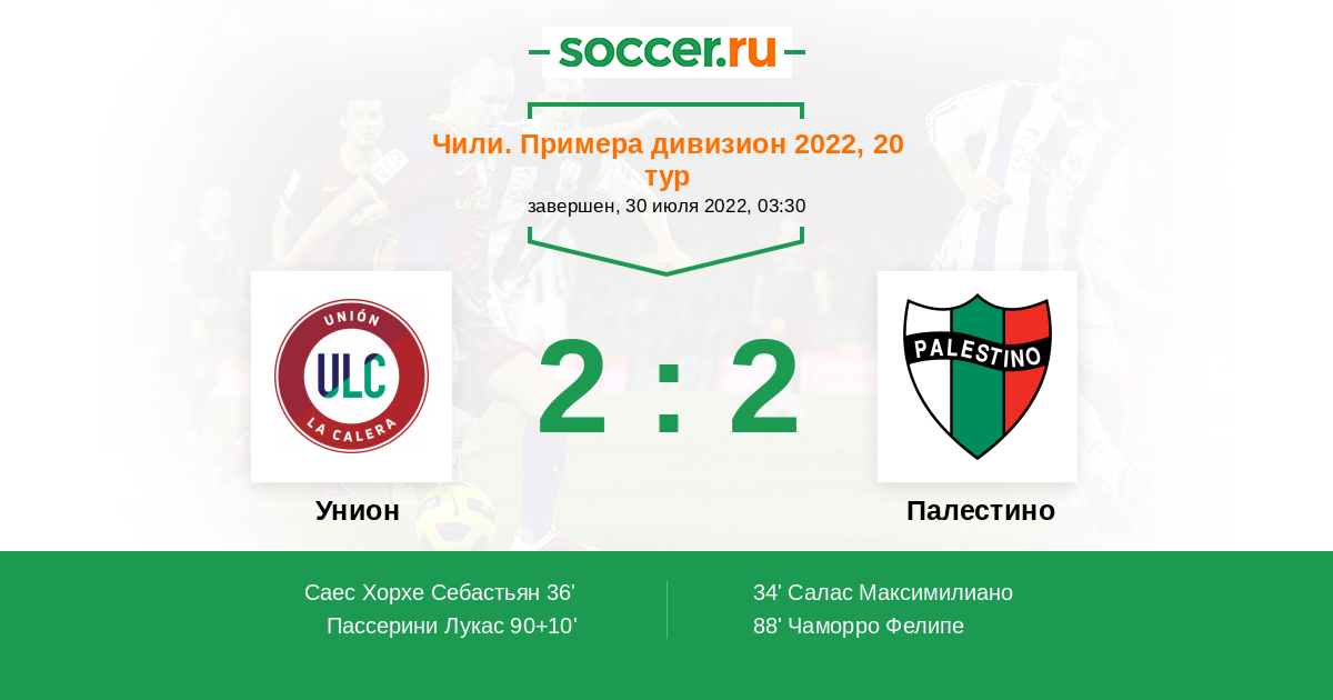 | Палестино | 31:34 | 16:12 | 15:22 |