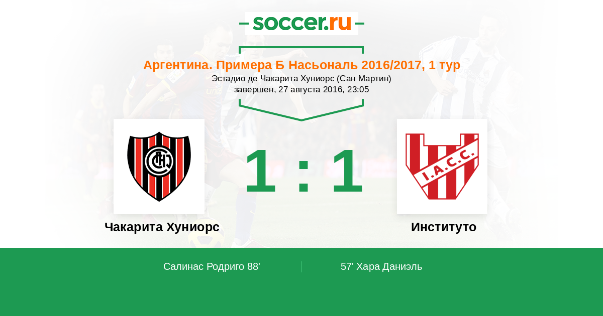 | Чакарита Хуниорс | Институто | |