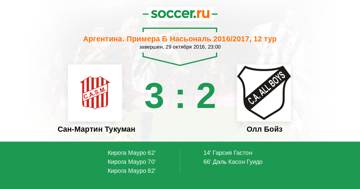| Сан-Мартин Тукуман | Олл Бойз | |