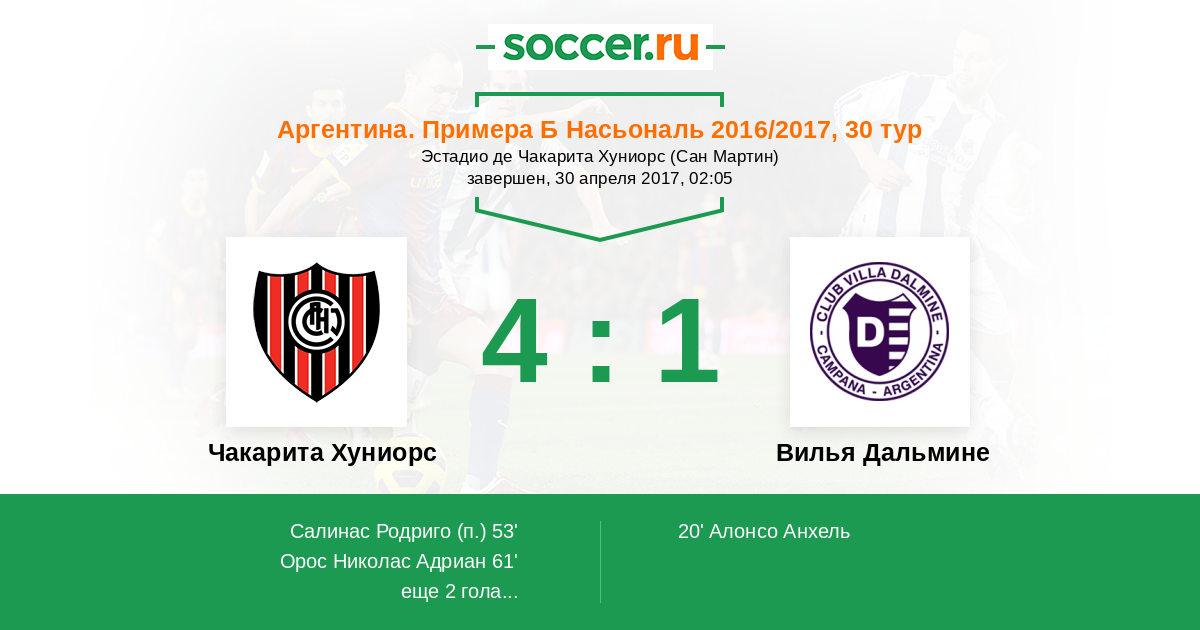 | Чакарита Хуниорс | Вилья Дальмине | |
