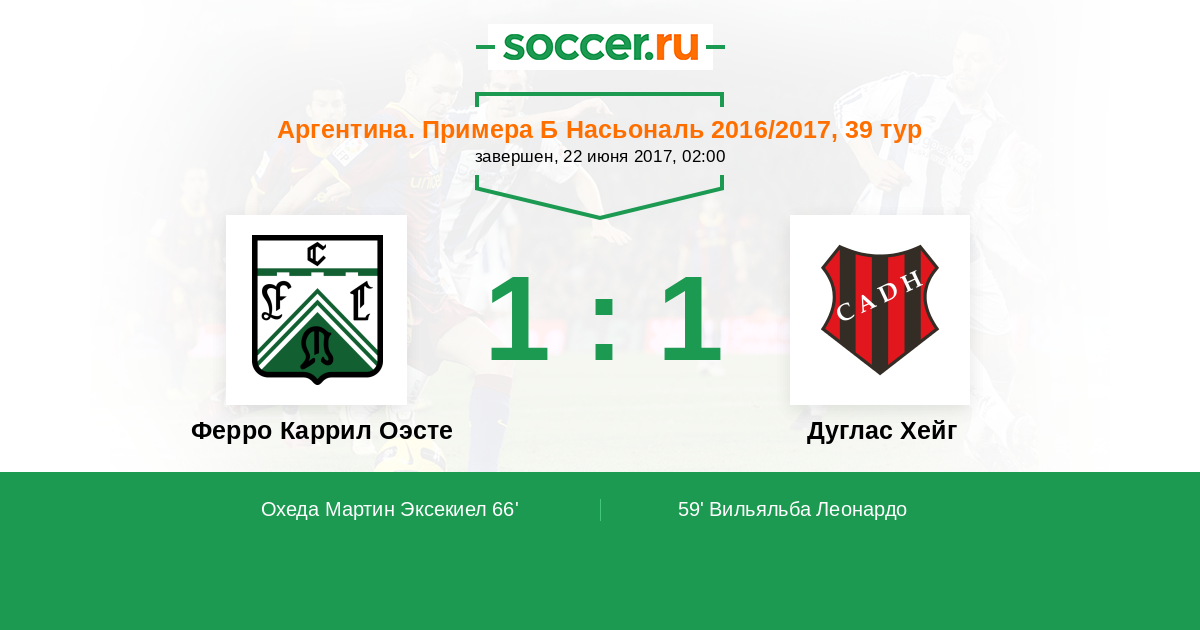 | Ферро Каррил Оэсте | 3:2 | 2:1 | 1:1 |