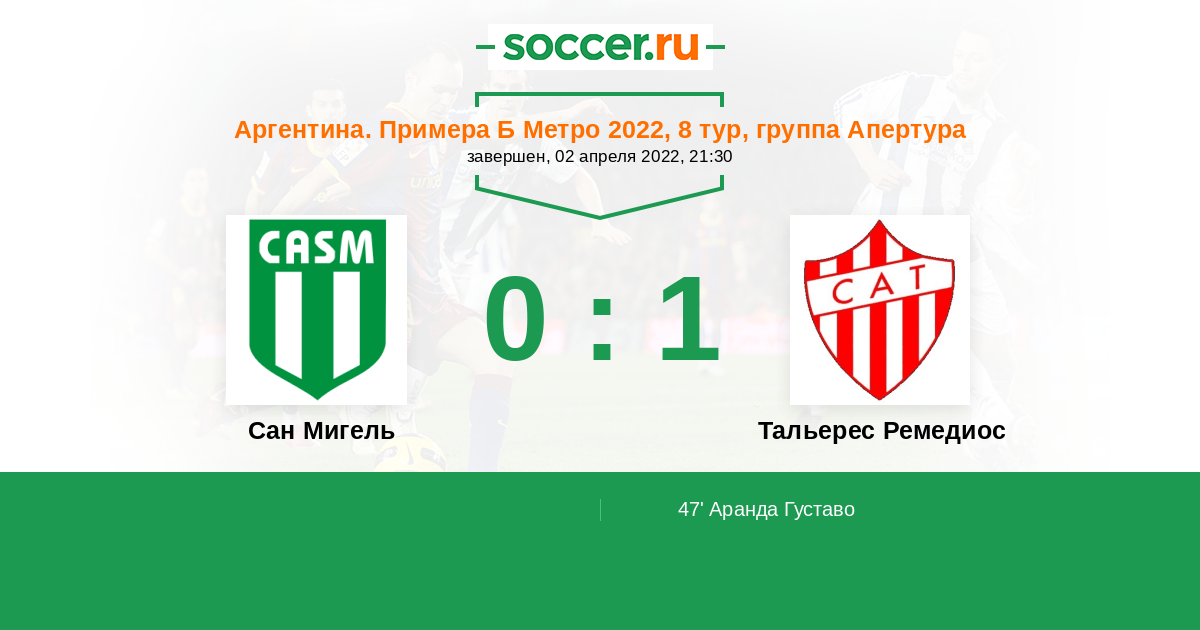 | Аргентина. Примера Б Метро | 14 | 3 | 4 | 7 |
