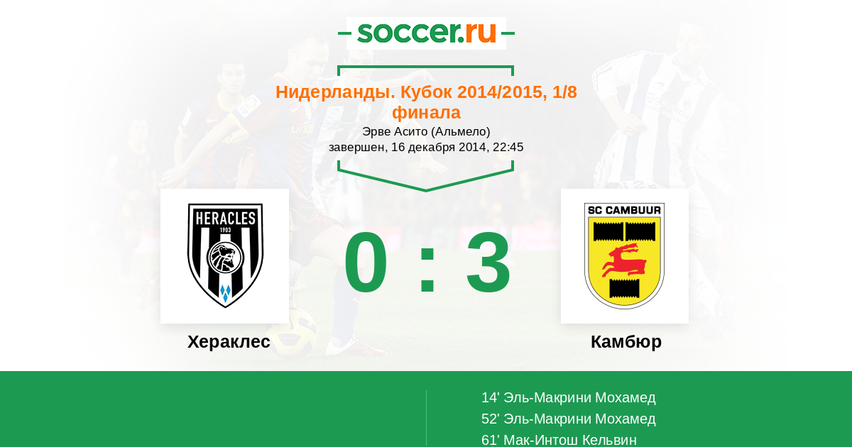 | Нидерланды. Кубок | 1 | 0 | 1 | 0 |