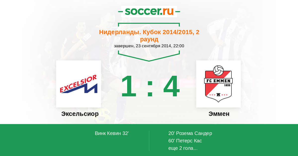 | Эксельсиор | 2:4 | 1:4 | 1:0 |