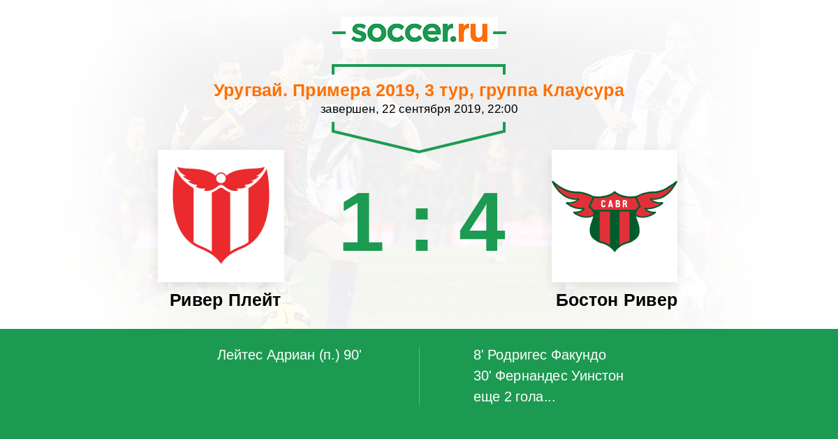 | Ривер Плейт | 26:37 | 14:23 | 12:14 |