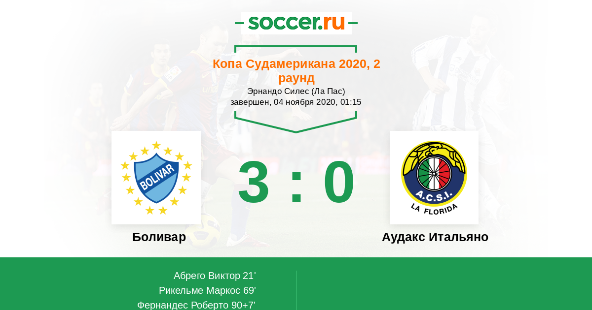 | Боливар | 1:2 | 0:0 | 1:2 |