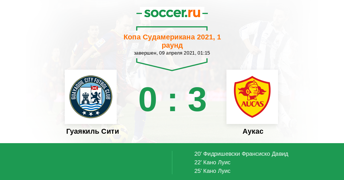 | Гуаякиль Сити | 1:2 | 0:0 | 1:2 |