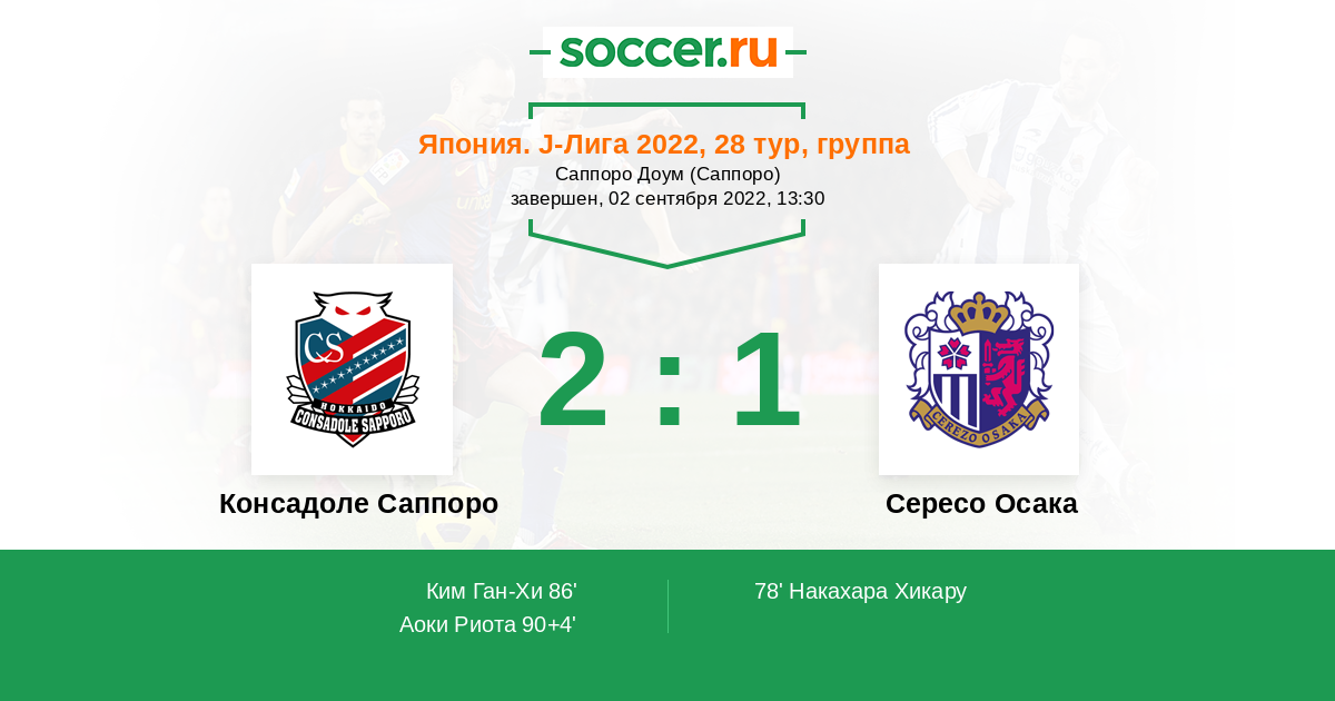 | Консадоле Саппоро | 31:41 | 16:17 | 15:24 |