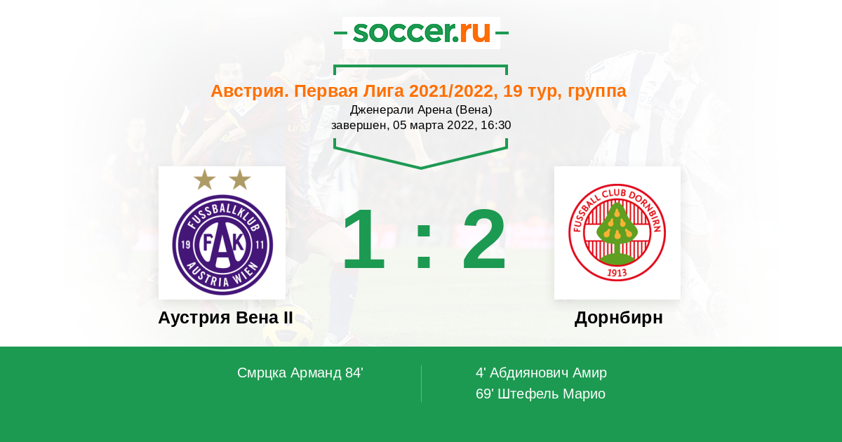 | Аустрия Вена II | 11:17 | 7:10 | 4:7 |