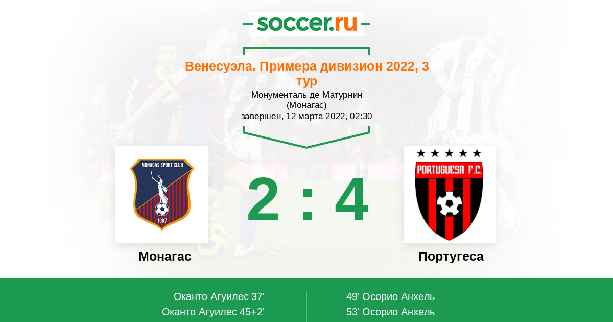 | Монагас | 32:32 | 17:13 | 15:19 |