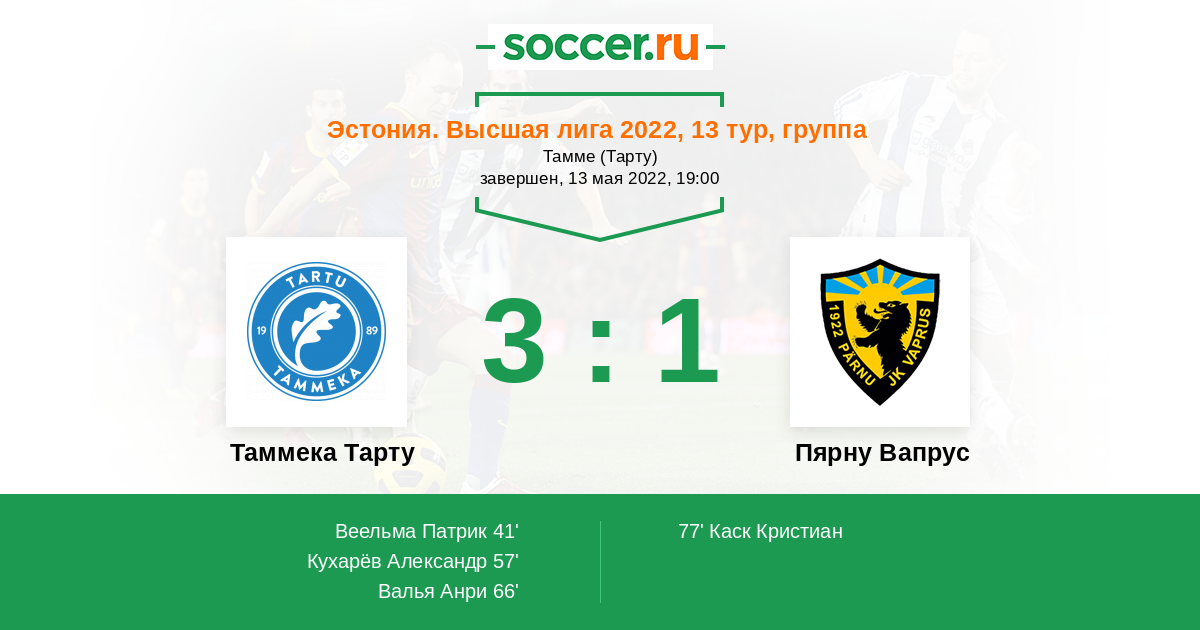 | Пярну Вапрус | 41:32 | 21:14 | 20:18 |