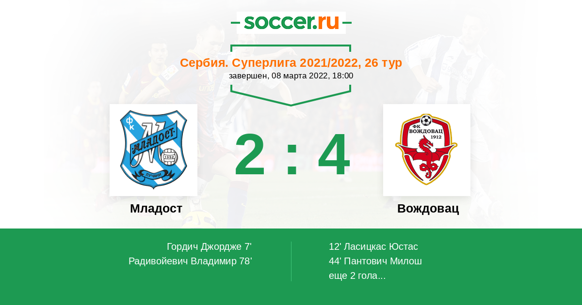 | Сербия. Первая лига | 4 | 1 | 1 | 2 |