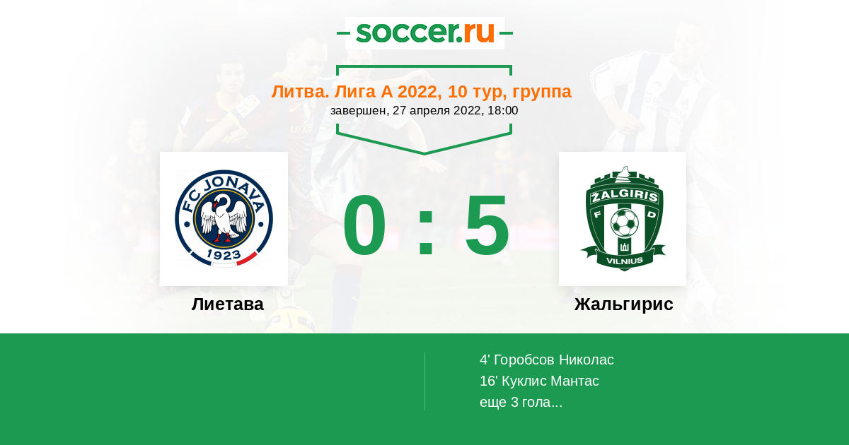 | Жальгирис | 62:16 | 33:9 | 29:7 |