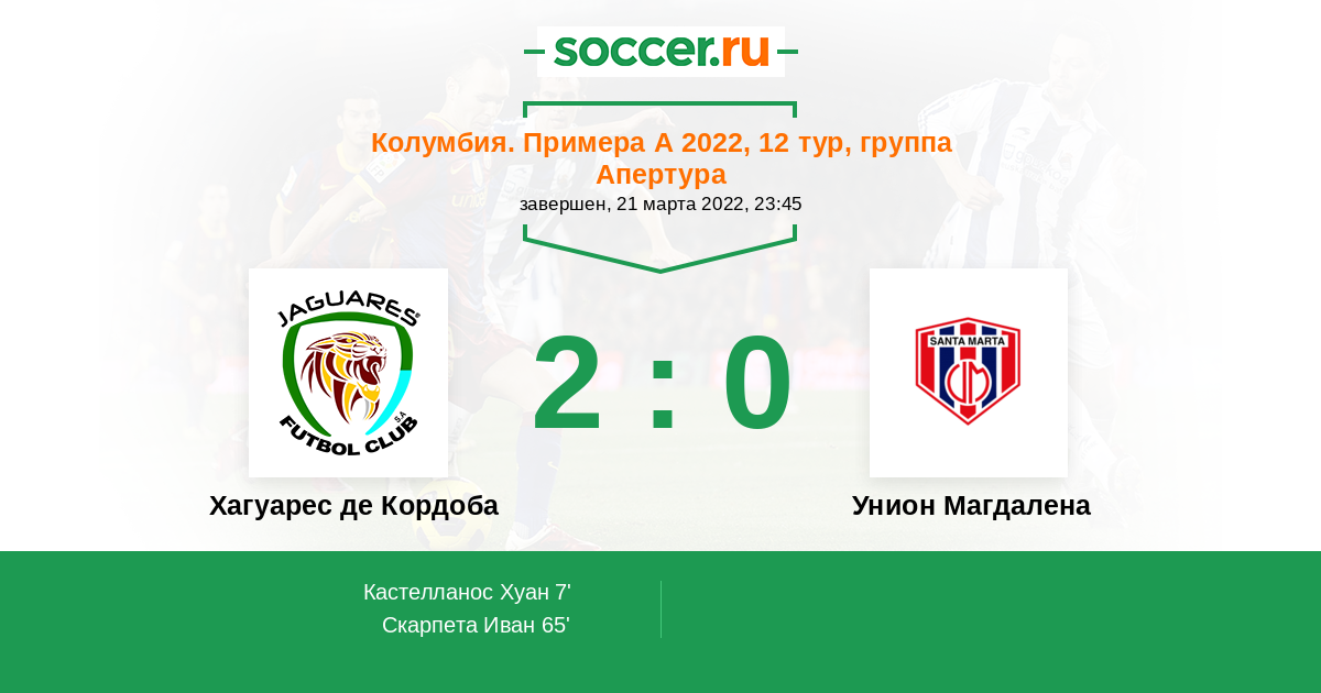 | Хагуарес де Кордоба | Унион Магдалена | |