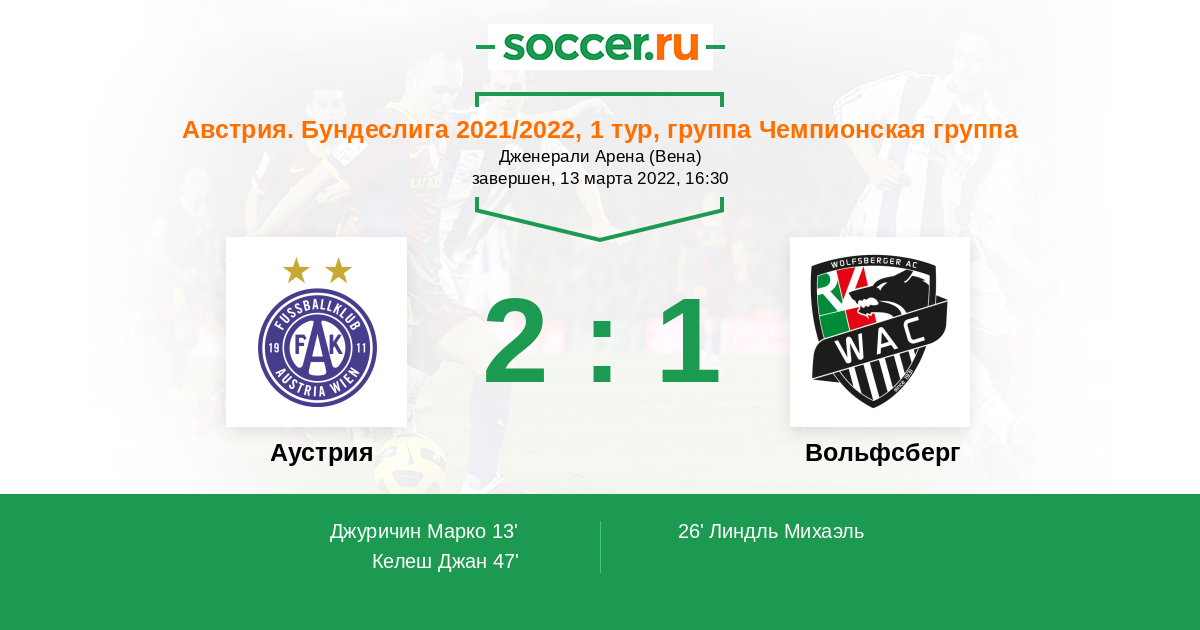 | Австрия. Бундеслига | 50 | 22 | 18 | 10 |