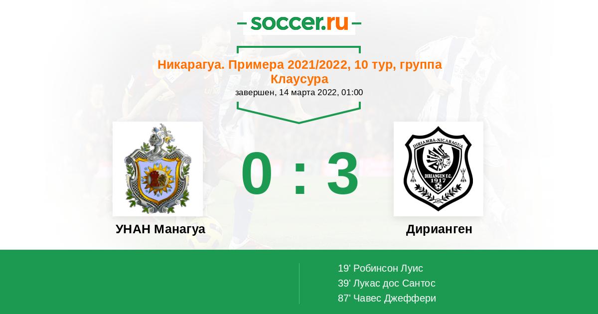 | УНАН Манагуа | 33:74 | 17:37 | 16:37 |